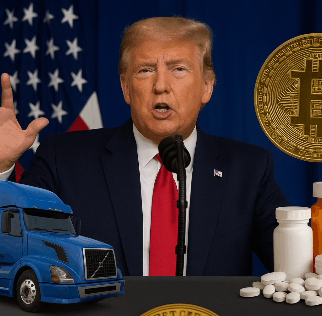 Nuevos aranceles de Trump a camiones pesados, farmacéuticas y criptomonedas