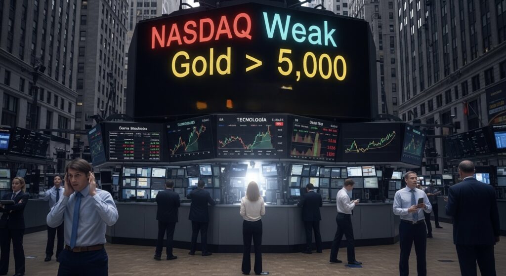 Apertura de Wall Street hoy: Nasdaq débil, oro supera los 5.000 dólares