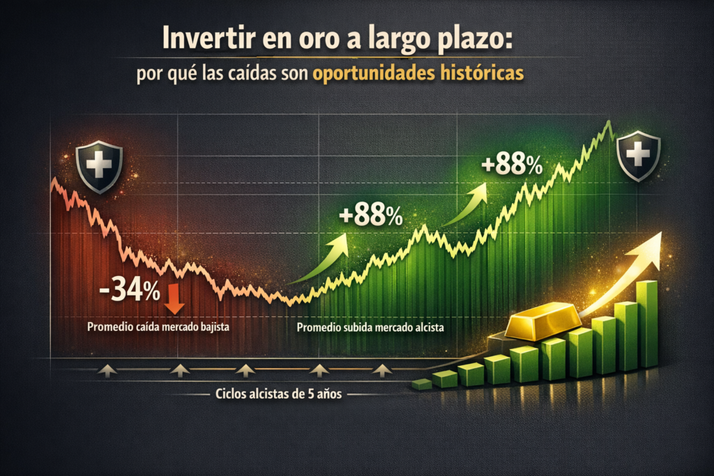 Cuando el sentimiento del mercado es negativo, es precisamente cuando surgen las mejores oportunidades. En ese contexto, invertir en oro a largo plazo permite aprovechar precios más bajos antes de los grandes movimientos.