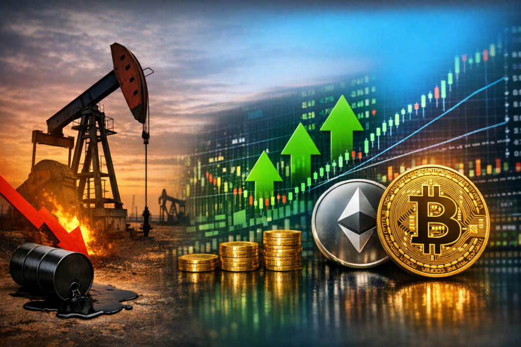 Mercados financieros hoy: petróleo cae y bolsas suben con impulso en criptomonedas