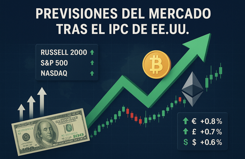 Las previsiones del mercado tras el IPC de EE.UU. apuntan a un optimismo moderado en los principales índices bursátiles y un renovado impulso en el mercado de criptomonedas. El dato de inflación, que resultó menos preocupante de lo que temían los analistas, ha dado aire a los inversores, con subidas destacadas en renta variable, repunte de altcoins y una ligera debilidad del dólar.